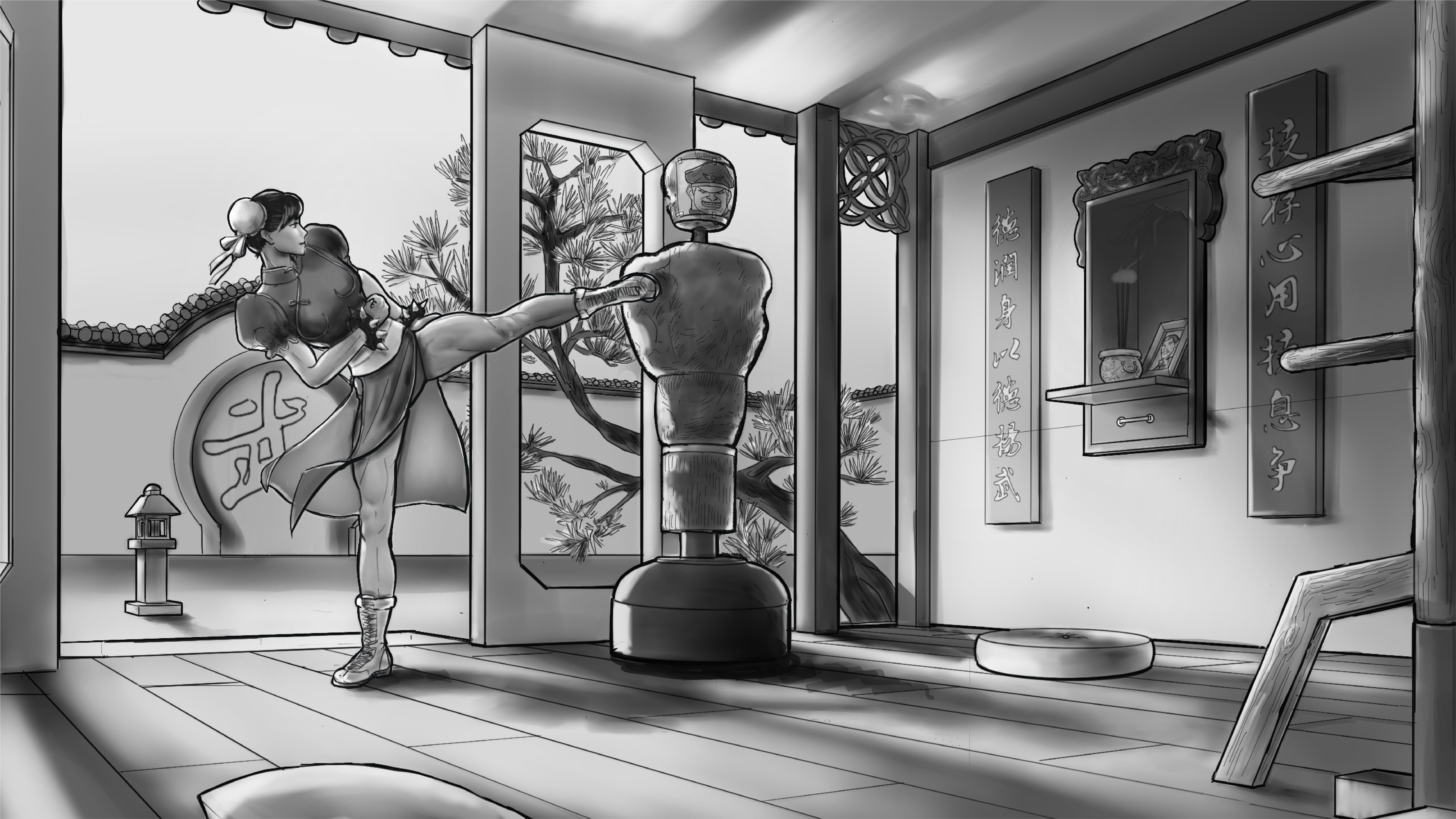 A personal practice project focused on the environment concept art of Chun-Li from the Street Fighter series in 2022. I started with research on Chun-Li’s background story and the Chinese cultural references, and then develop the visual based on the findings and inspirations drawn from it.